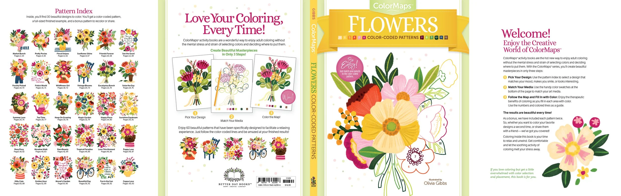 Each ColorMaps activity book is printed on high-quality art paper and is presented in a deluxe padfolio format! From flowers and butterflies to happy words-and-phrases, the designs are fresh, modern, and easy to color. Readers will map their way to relaxation, enjoyment, and creative satisfaction with the new ColorMaps activity series from Better Day Books.